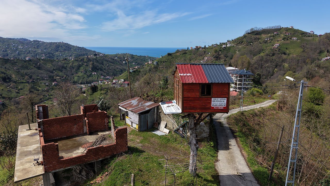 Eğimli ve zor coğrafyası ile dikkat çeken Doğu Karadeniz’de, ağaç üzerine inşa edilen ahşap evler ilgi odağı oluyor. Rize’de doğup büyüyen ve İstanbul’da yaşayan Resul Bilen, çocukluk hayalini gerçekleştirmek için memleketindeki dede yadigarı ceviz ağacının zirvesine ahşap ev yapmaya karar verdi. 10 yaşından beri ağaç ev yapma hayali kuran Bilen, çevresindekilerin eleştirilerine aldırış etmeden tek başına evin inşasına başladı. Bahçede kurumaya başlayan ceviz ağacının üzerine elektrik tellerinin hizasını aşmayacak şekilde planlanan yapı, 7 metre yüksekliğe inşa edildi. 9 metrekarelik odası ve 3 metrekarelik balkonu bulunan ahşap ev, kısa sürede köyün sembolü haline geldi. Yoldan geçenler, anı fotoğrafı çektirirken; ahşap evin dışına asılan ‘Yere ev yapmak er kişinin işi, ağaca ev yapmak ise Bilenler’in işi’ yazılı tabela görenleri tebessüm ettiriyor.