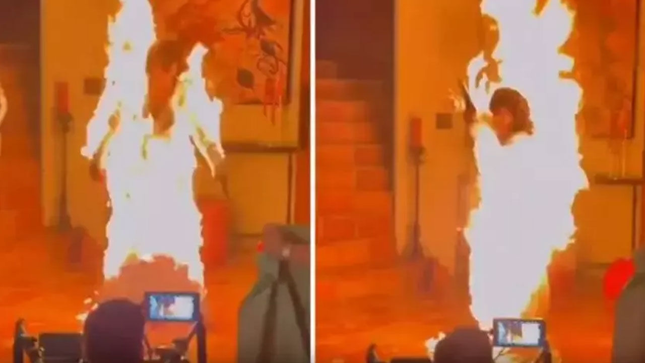 Klip çekiminde yangın paniği